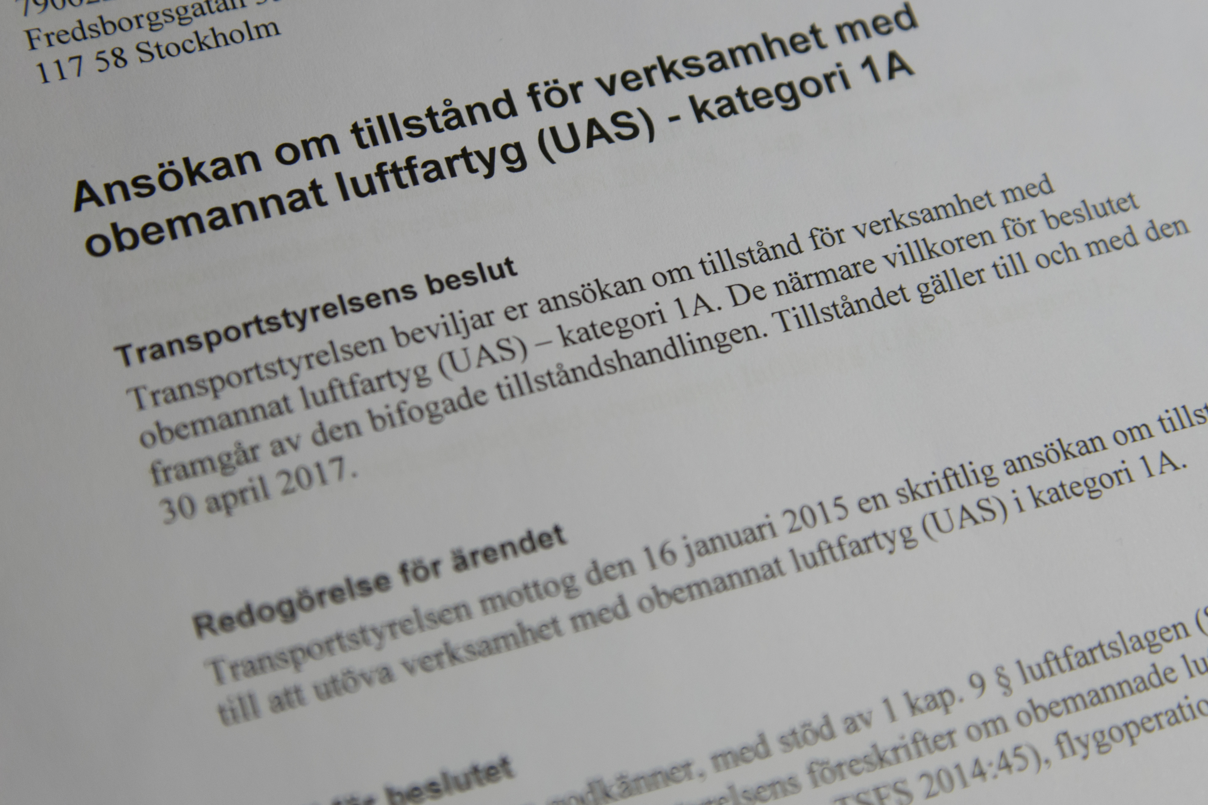 Beviljat tillstånd för drönare