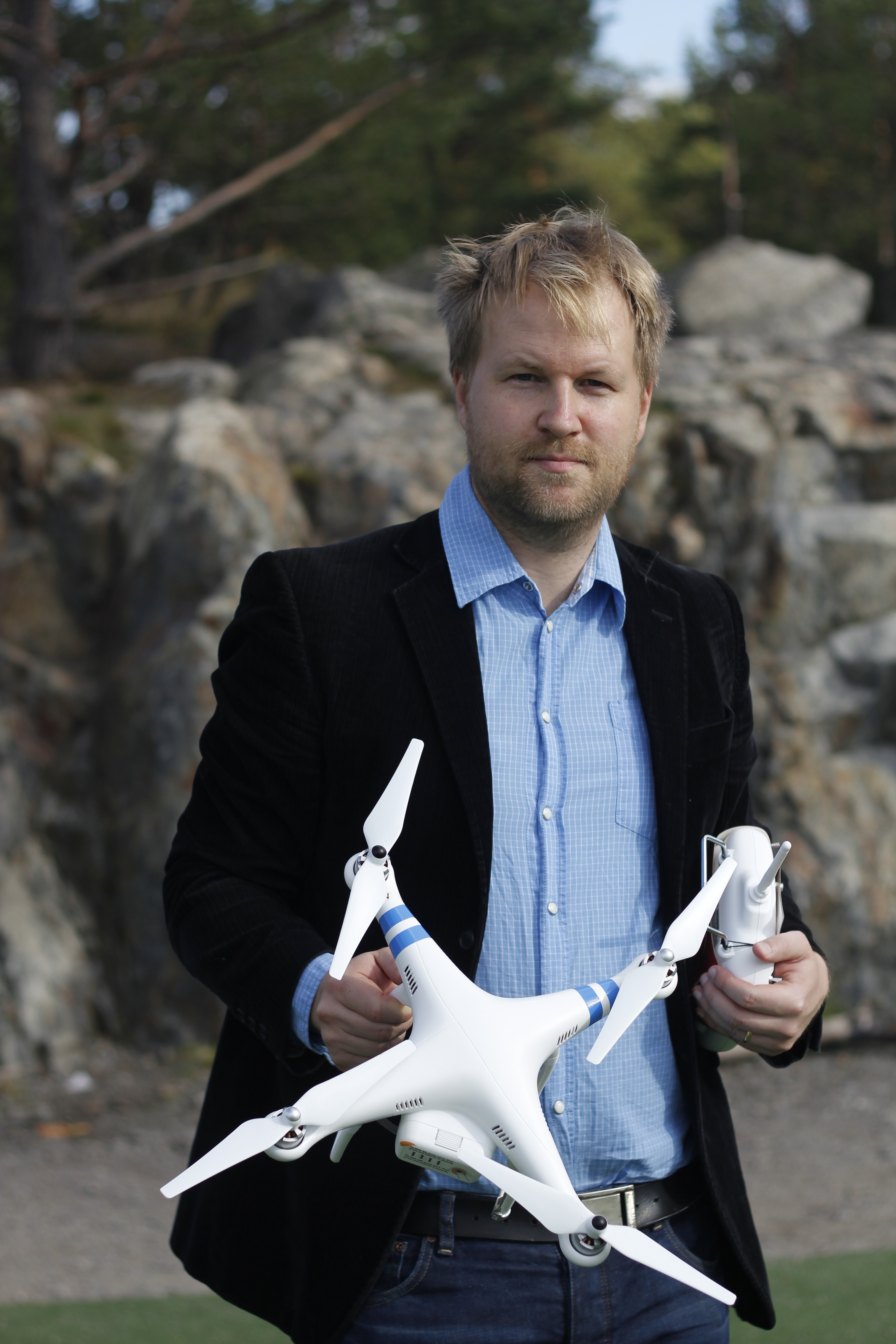 Här filmar vi med vår drönare igen. Med den kan vi erbjuda filmande från hög höjd och stadiga åkningar. Inom kort får vi självgranskningsrätt från Försvarsmakten.